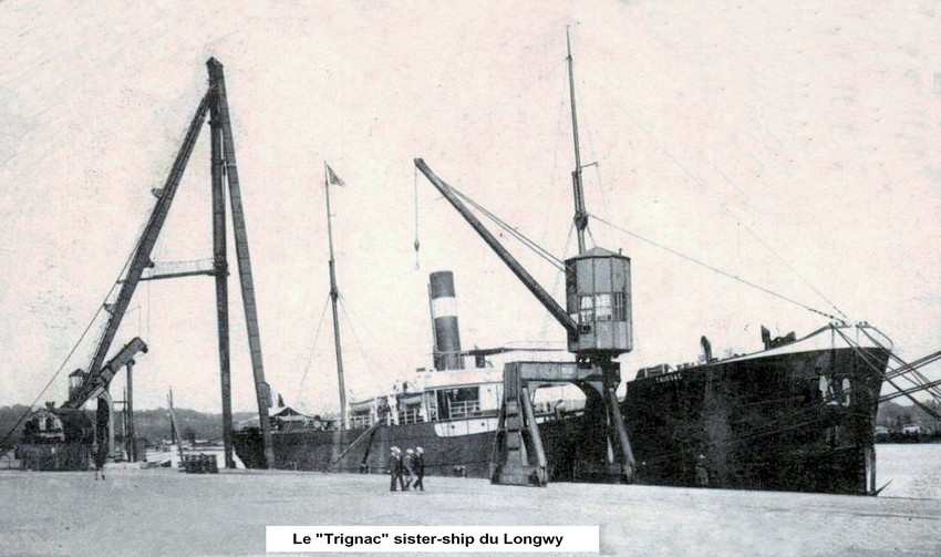 Le « Longwy » était un cargo à coque acier et propulsion vapeur construit en 1902 pour le compte de la Société des Chargeurs de l’Ouest dont le siège social était à Nantes.